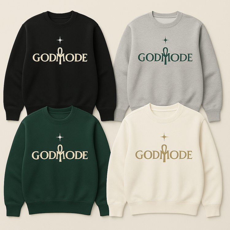 Step into your highest frequency with our premium cotton GODMODE sweatshirt. Crafted from 100% natural, breathable cotton, it’s soft to the touch, effortlessly comfortable, and designed to move with your energy.